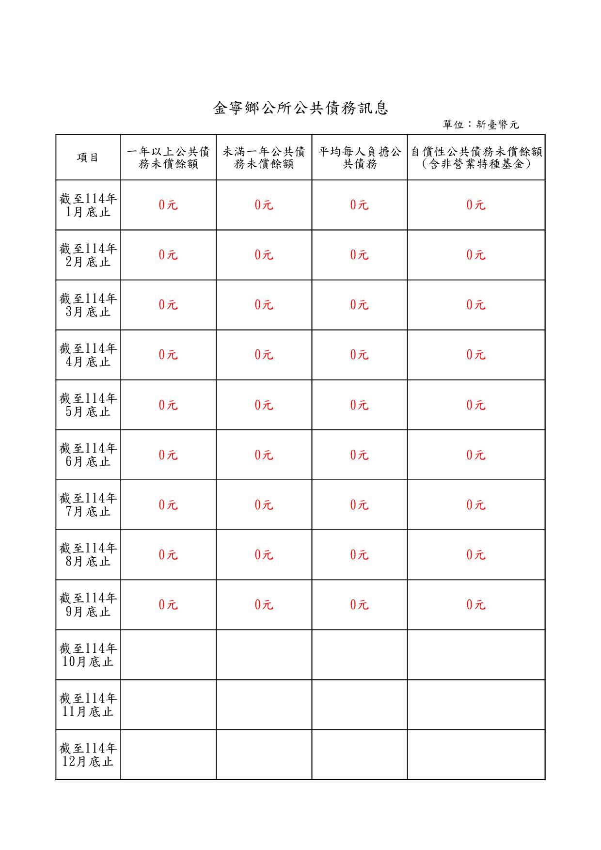 (一)金寧鄉公所公共債務訊息。(附表1)